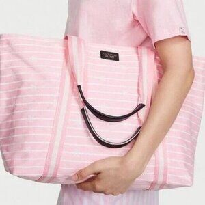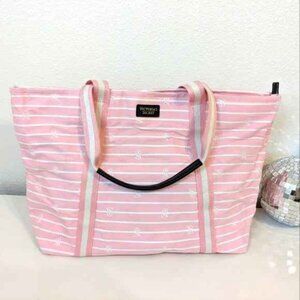 Victorias Secret Pink White Stripe Bag Large Canvas