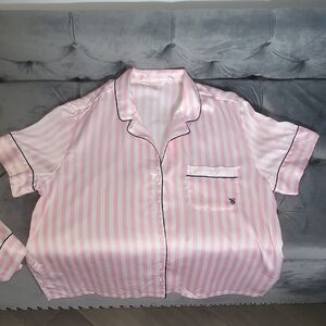 Victoria's Secret Pink + White Striped Pajama Top & Shorts