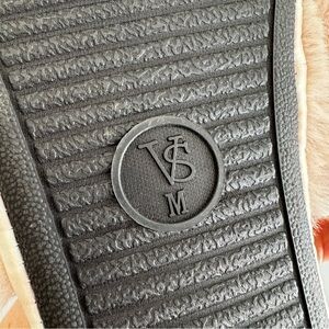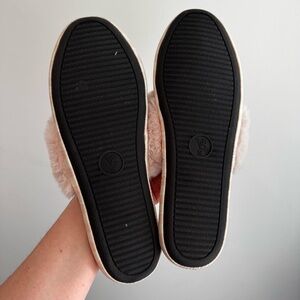 Victoria’s Secret Pink White Striped Satin Slipper Mules Faux Fur Trim Medium