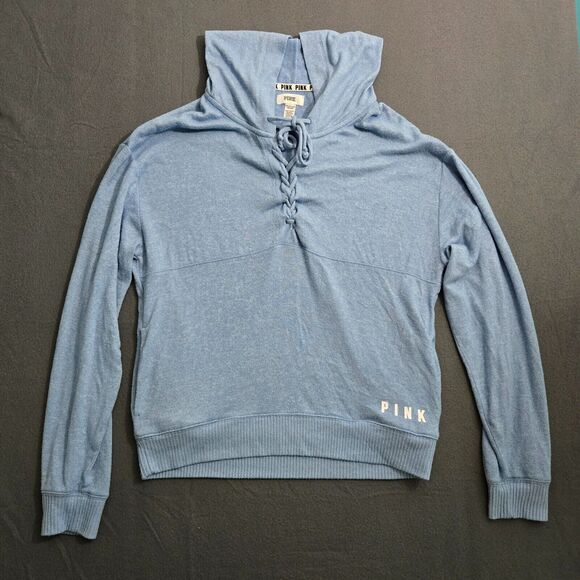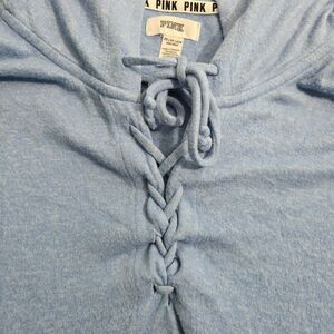Victoria's Secret Pink Women XS Blue Lace Up Pullover Hoodie Sweatshirt