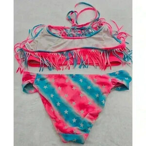 Victoria's Secret Pink Women's Size M/L Pink and Blue Fringe Star Bikini