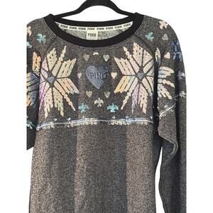 Victorias Secret Pink Womens Sweatshirt Small P Black Sequin Snowflake Pullover