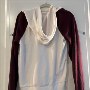 Cozy white hoodie with bold 'PINK' logo in maroon color. Soft and comfortable fabric. Excellent condition.