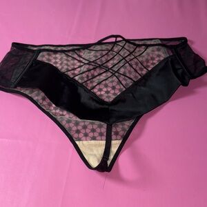 Chic and stylish lace panties. Features pink and black designs. Perfect for a touch of elegance.