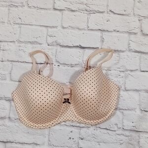Experience the perfect blend of style and comfort with this Victoria's Secret bra, featuring a charming polka dot design in pink and black. The classic underwire style with molded cups and adjustable straps ensures a seamless fit, while the soft, stretchy fabric offers all-day comfort.