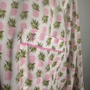 Experience ultimate comfort with this Victoria's Secret pajama set, featuring a delightful blend of pink and green hues. Crafted from a lightweight fabric, these pajamas offer a relaxed fit perfect for lounging or a restful night's sleep.
