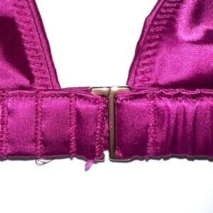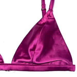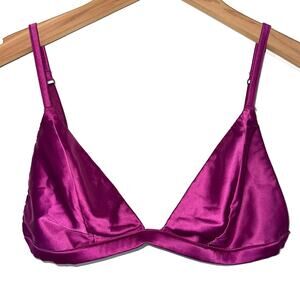 Victoria’s Secret Satin Traingle Unlined Wireless Pink Bralette Size Large Excellent condition, no flaws Color: Purple-Pink V-neckline Adjustable thin straps Silky satin fabric Wireless Unlined 95% polyester/5% spandex; machine washable MSRP $39.95 Measures approximately ~ - Chest: 14.25” - Length: 9.5” Tags: silky, satin, lounge, VS, everyday, casual, feminine, sexy