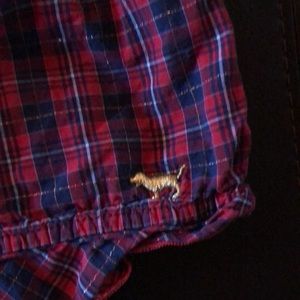 Victoria’s Secret Pink boxer Shortie hipsters in plaid with a pull ribbon adjustable waist in size medium Embellished with some sparkle thread in the plaid and a gold sparkly pink dog logo. We are a smoke free and pet free home please feel free to ask any questions you may have:)