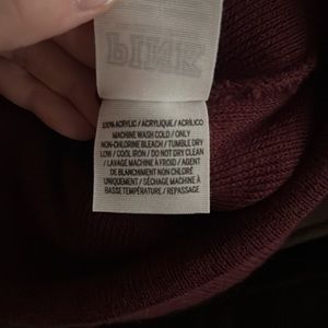 “Pink” from Victoria’s Secret winter hat, one size fits all. Purple and white with Pom-Pom on top. Machine washable. Great condition, like new.