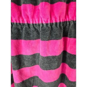 Victoria's Secret Pink Women's Striped Pink and Gray Velour Puff Sleeve Mini Dress. Heavy weight, soft knit velour. Elastic neckline and waist. 80% Cotton; 20% Polyester. Y2K. Collegiate. Academic. Preppy. Cute. Pit to Pit: 15.5"; Length: 31.5" (measurements approximate). Size Medium. Excellent Used Condition.