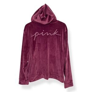 Victoria's Secret Pink women's purple logo velour zip up hooded sweatshirt XXL