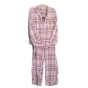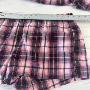 Victoria's Secret Pink/Black Plaid Pajama Set Women’s Shorts & LS Button Down