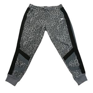Victoria’s Secret Pink Leopard Thick Fleece Joggers Gray Black White Size Medium