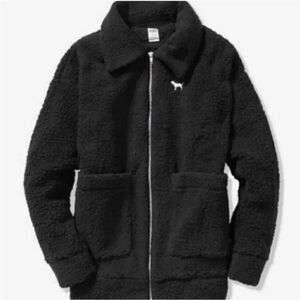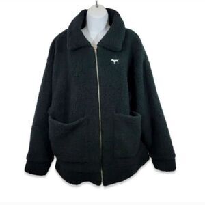 Victorias Secret Pink Sherpa Boyfriend Jacket Oversized in Black Size XS