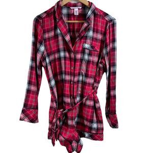 Victorias Secret Plaid Flannel One Piece Romper Pajamas Size S Red Long Sleeve