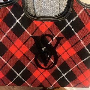 Victoria's Secret Plaid Flannel Red and Black Tote with Large Embroidered Logo