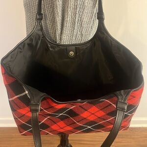 Victoria's Secret Plaid Flannel Red and Black Tote with Large Embroidered Logo. A beautiful piece, it is great for short trips around town or long ones away; the beach and trip to the mountains. It could also be used as a baby/toddler bag. A solid designer, Victoria's Secret items are meant to endure and this piece has a lot more life left. Only used once out of the bag; no flaws. An excellent addition to your closet.
