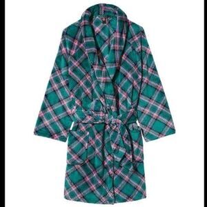 Victoria’s Secret Plaid Plush Velour Plaid Robe NEW Size M/L