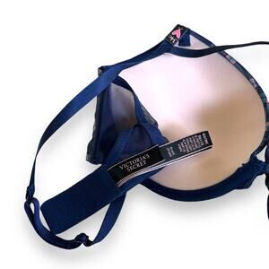 Victoria's Secret Very Sexy bra and cheeky underwear set (size large) The bra adds 1 cups in a blue plaid and lace. Size 34C It's ultra-lifting padding is comfortable, the plunge style is perfect for a revealing neckline and sexy accents, The bra has hook and eye closures on the back strap. The panties are high cut and strapy on the sides with a see trough mesh back panel.