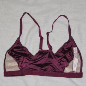 Victoria's Secret Plum Purple Satin Front Close Mesh Sides Bralette Bra sz Small. No padding. No wire.