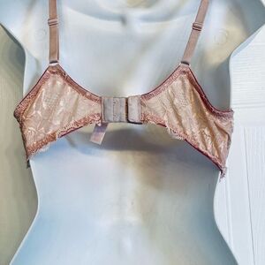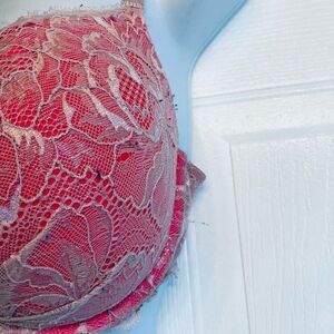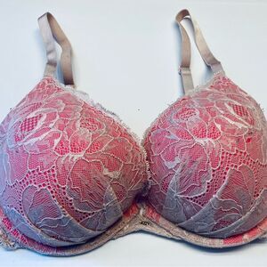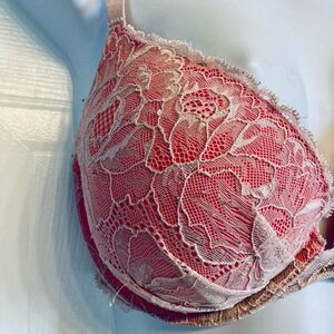 Victoria's Secret Plunge Bra Pink White Lace 34DD