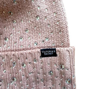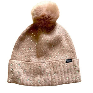 Victoria’s Secret Pom Pom Winter Hat Beanie Rhinestones Embellished Blush NWT