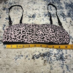 Victoria’s Secret Purple & Black Leopard Print 2-Piece Bikini. The top straps are adjustable, and it has padding. As shown in photos above. Please note that the top is a size small. And the bottoms are a size XS. The listing is listed as a size small. Photos of approximate measurements are posted above. In great preowned condition. No visible signs of wear. Feel free to make a reasonable offer through the offer button!