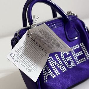 Victoria's Secret Purple Dream ANGEL Mini Purse Bag Keychain. This listing is just for the mini bag keychain as pictured. The original tag is still attached, but shows wear and is written inside of it. I believe this bag initially came with beauty products, but this is for the bag only, no other products. Some of the "ANGEL" graphic has come off in places on the bag, please see the pictures. No other issues and still has a ton of life left, but is not perfect.