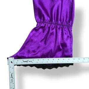 Indulge in luxurious comfort with this Victoria’s Secret satin romper in a rich purple hue trimmed with black lace. Feminine and flirty with adjustable straps and elastic waist for a flattering fit.