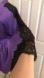 Beautiful and sexy purple satin robe from Victoria’s Secret. This robe features lovely black lace, which starts at the shoulders and then runs down the middle of the sleeve and encircles each cuff. There is an inner tie (photo 10) and a matching tie belt. This would look beautiful with a black nightie or bra and panties.