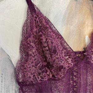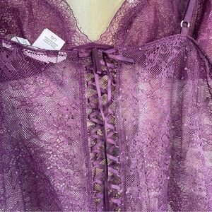 Size large. Gold foil trim on the cups. Adjustable skinny spaghetti straps. Corset style lace up back.