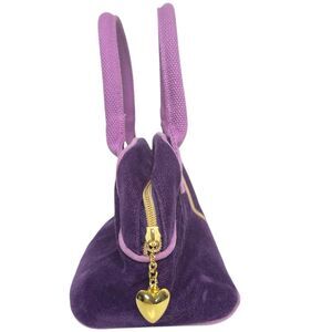 This luxurious shoulder bag from Victoria's Secret showcases a captivating purple and gold color scheme, highlighted by a striking gold heart design. Crafted with a velvet-like material, it offers a soft, elegant appearance, perfect for elevating any ensemble. The structured design and gold-tone hardware add a touch of sophistication, making it a standout accessory.