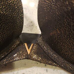 Victorias Secret Push Up Bra 32D Black Gold Metallic Padded Underwire