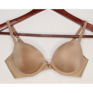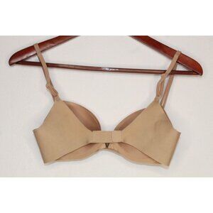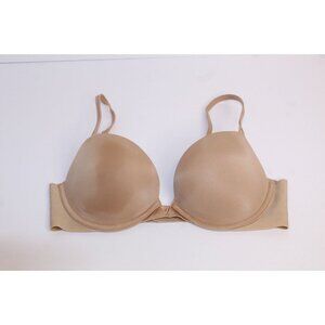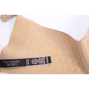 Victoria's Secret Push Up Bra Beige 32D Lightly Padded Underwire Medallion Logo