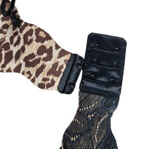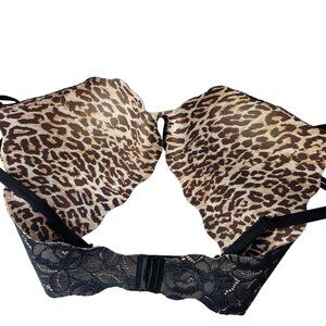 Victoria's Secret Very Sexy Secret Embrace Push Up Bra Undewire Black Floral Lace Animal Print Lining Adj. Excellent pre-owned condition with no stains or tears.