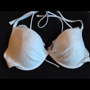 White floral embroidered print, The Gorgeous Push Up Halter Top