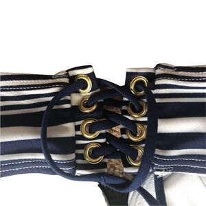 Victoria’s Secret Push Up Padded Navy White Twisted Bandeau Bikini Top 36B. Lace Up back. Strapless. Removable Pads. VGC
