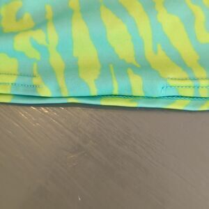 This Victoria's Secret Push Up Swim Tankini Top is a stylish and supportive swimsuit designed for women in size 38C. The teal center tie adds a fun and vibrant touch, perfect for a day at the beach or by the pool. Made of nylon and spandex, the tankini features a spaghetti strap design with built-in bra support and adjustable straps for a comfortable fit. The push-up style enhances your bust, while the one-piece design makes it easy to throw on for your summer adventures.