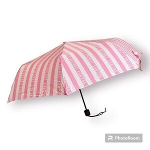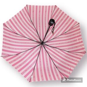 Stay dry in style with this chic Victoria’s Secret umbrella featuring a push-up to open mechanism and a convenient bungee cord handle. The pink and white striped design is eye-catching, and it comes with a matching sleeve cover for easy storage. Brand new with tags, from a smoke-free and pet-free home.