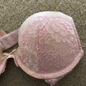 Fun and flirty blush/baby pink lace bra that is very comfortable! In great conditions and was worn only a few times! Size 32C