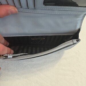 Victorias Secret Quilted Tech Skyflower Blue Wristlet Wallet Gold Detailing