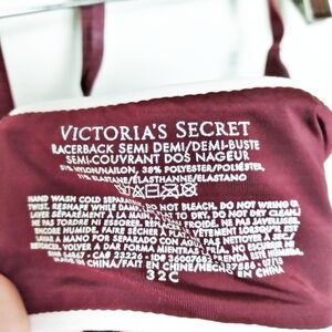 Victoria's Secret Racerback Semi Demi Front Close Bra. adjustable straps and light padding for support.