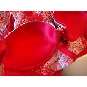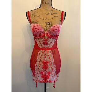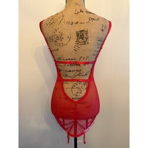 Victoria’s Secret Red Corset Lingerie Garter Straps Size 34B Push Up Bra