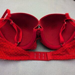 Victoria's Secret Red Embroidered Dream Angels Lightly Lined Demi Bra Size 32D