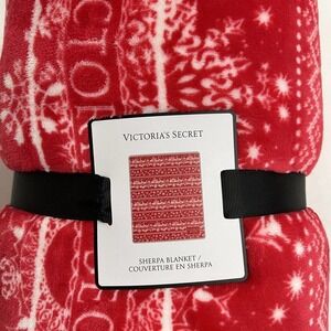 Victoria's Secret Red Holiday Throw Blanket Sherpa Snowflake VS Logo 50x60.