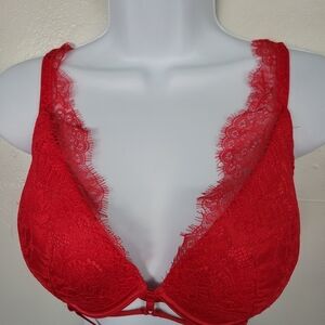 Victoria's Secret Red Lace Bra 32DDD Very Sexy Lightly Lined Plunge VS Strappy