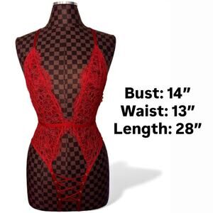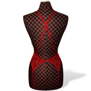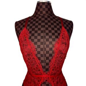 Victoria's Secret Red Lace Teddy Lingerie Size Medium Crotchless Sheer Coquette