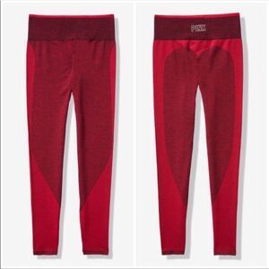 In like-new condition. Purchased for myself from the VS store and removed tags but never wore! Two-toned red marled leggings. High waist with seamless waist band for comfort. Perfect for all activities or lounging! Size small