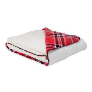 Victoria's Secret Red & Pink Plaid Soft Sherpa Throw Blanket 50x60
