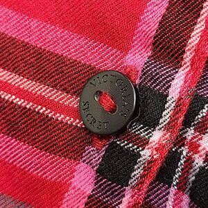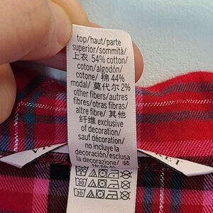 Victoria's Secret Red Plaid Long Sleeve Button Up Pajama Top S. Full front button closure. Long sleeves. Front left chest pocket. Embroidered "V" on pocket. 54% cotton / 44% modal / 2% other fibers. Soft and comfortable.